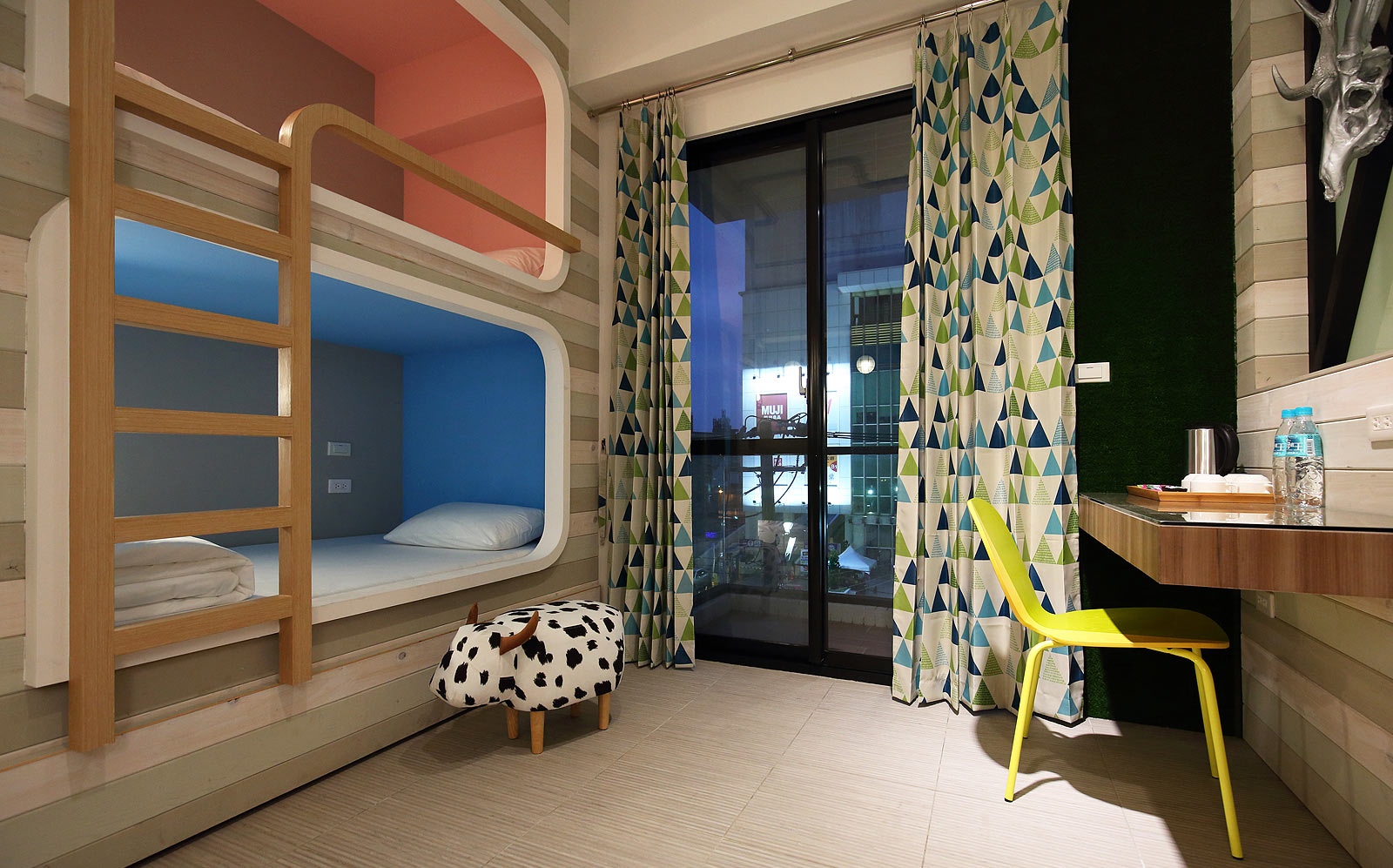 可以體驗背包客睡蜂床、或是親子共住有趣空間、或是二大床的標準配備,輕鬆營造生活中的小樂趣。